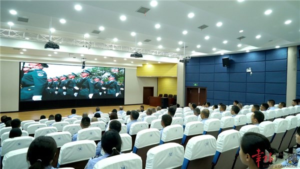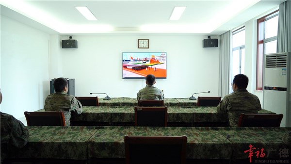 在市人武部,官兵們齊聚會(huì)議室,集中觀看大會(huì)直播。大家專心致志聆聽(tīng)習(xí)近平總書(shū)記重要講話,目不轉(zhuǎn)睛地觀看閱兵式和