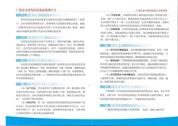| 名稱(chēng): | 廣德市農(nóng)村危房改造政策明白卡 | 文號(hào): | 無(wú) |