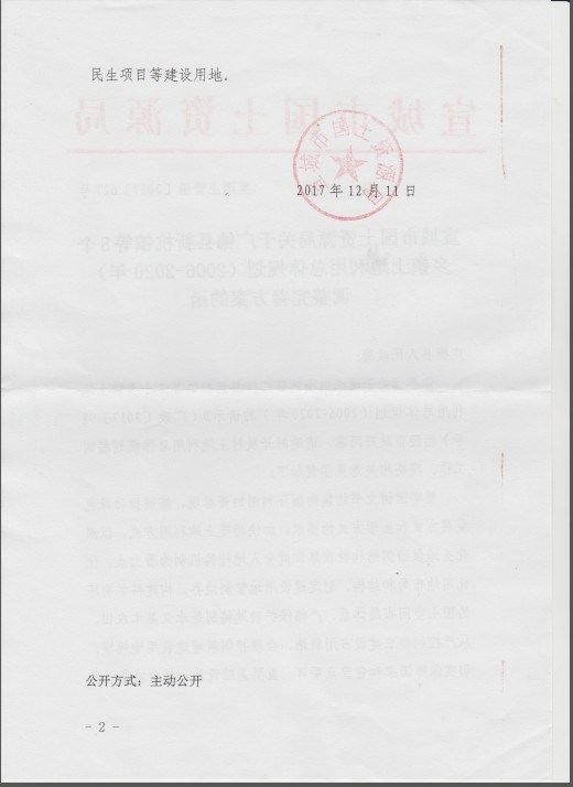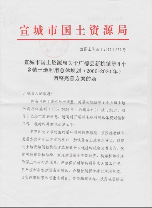 | 關(guān)鍵詞: | 宣城市國(guó)土資源局關(guān)于楊灘鎮(zhèn)土地利用總體規(guī)劃(2006-2020)調(diào)整完善方案的函,國(guó)土空間總體規(guī)劃批后公開 | 有效性: | 有效 |