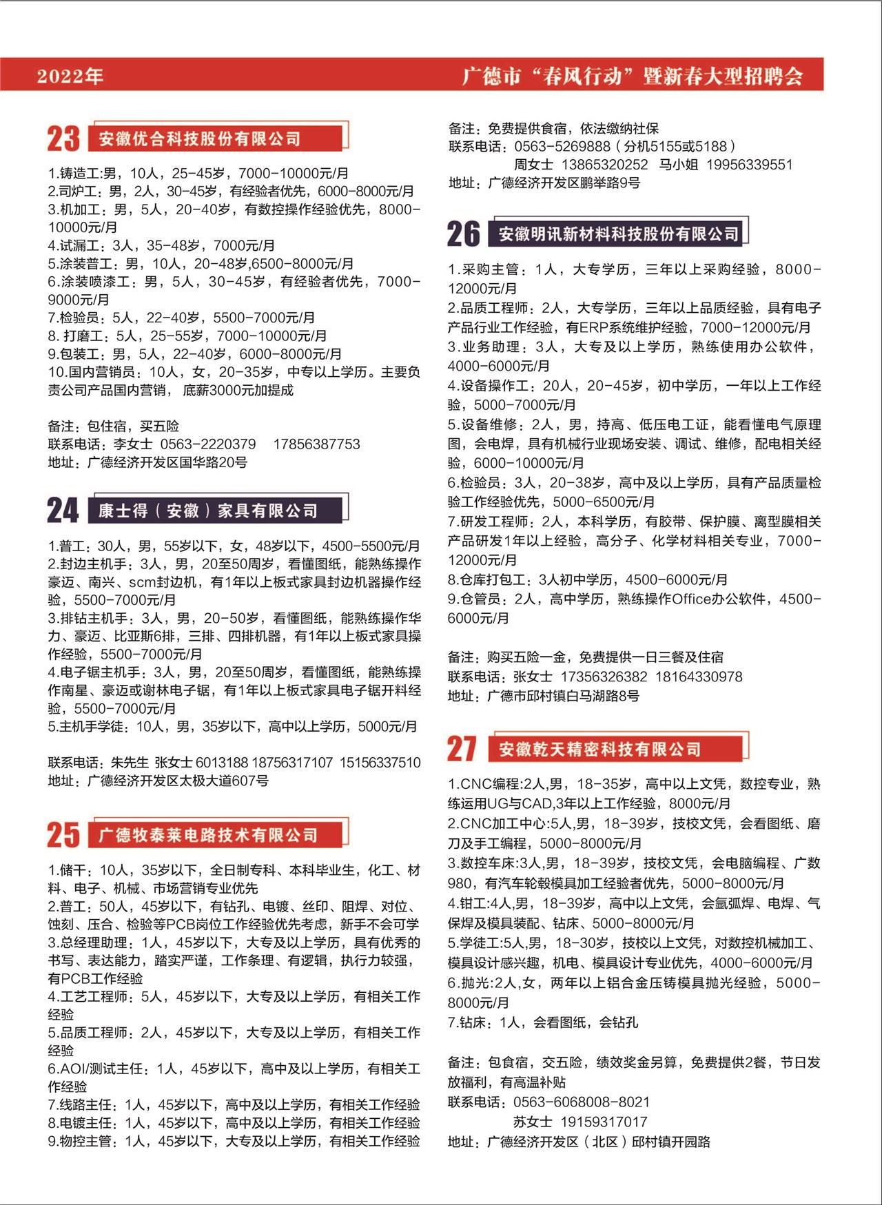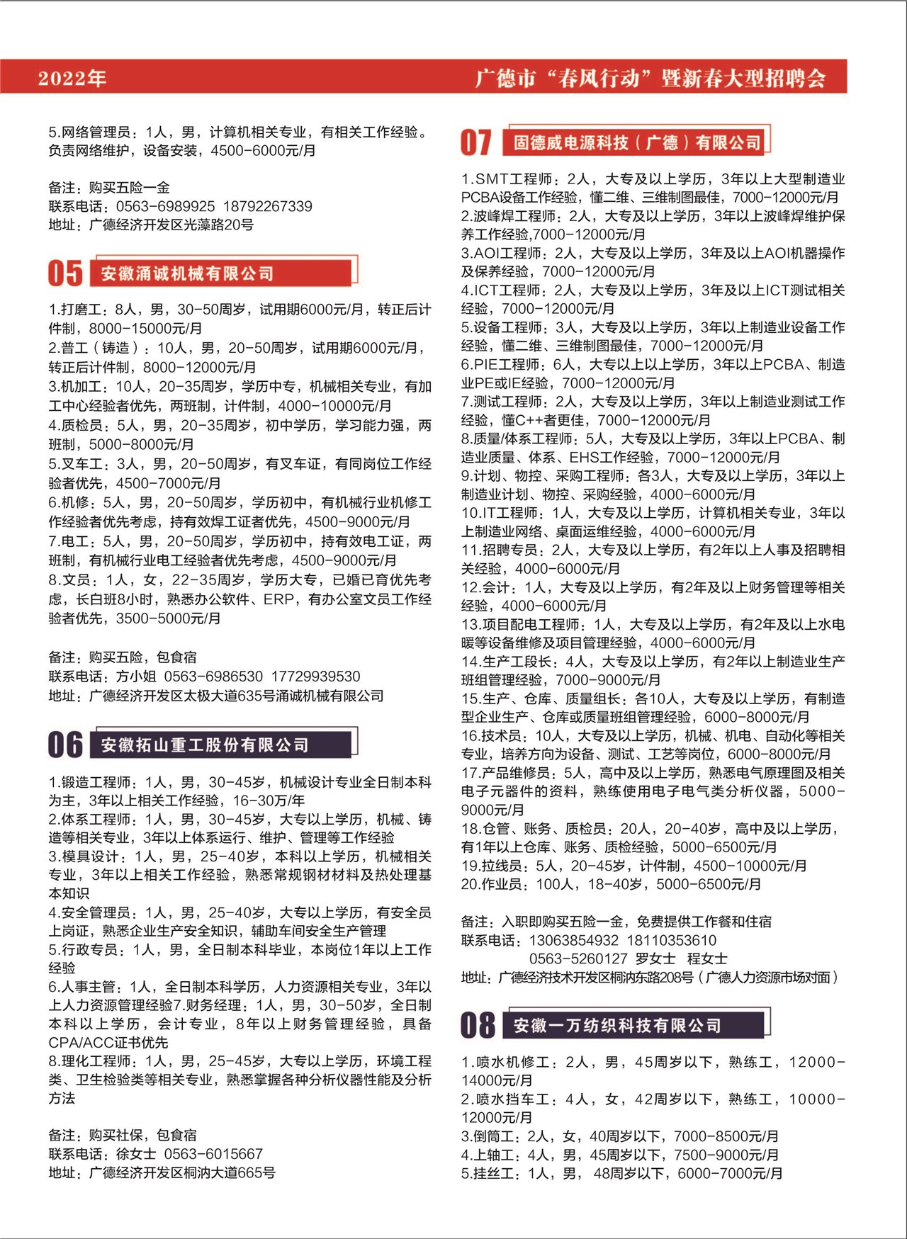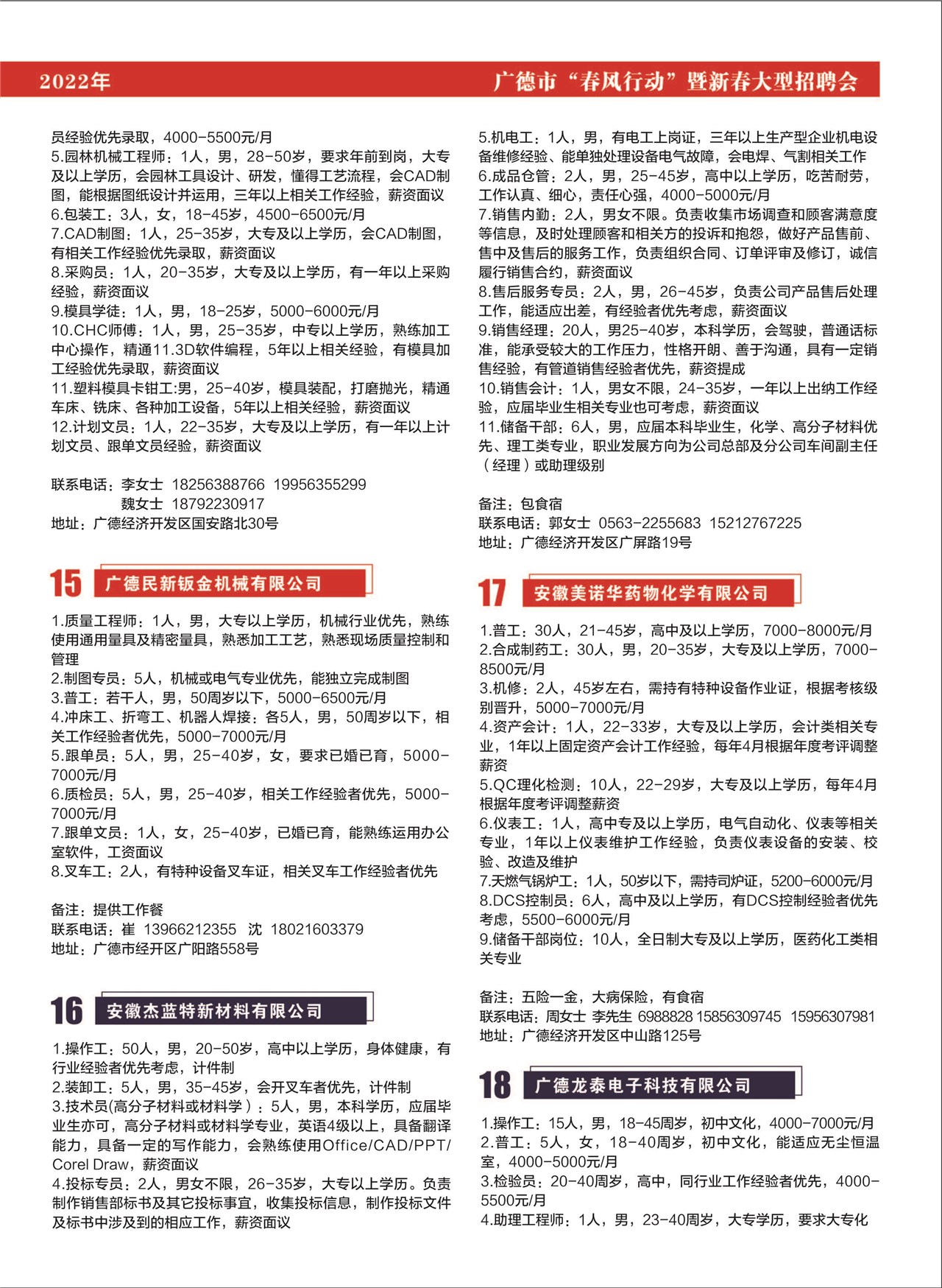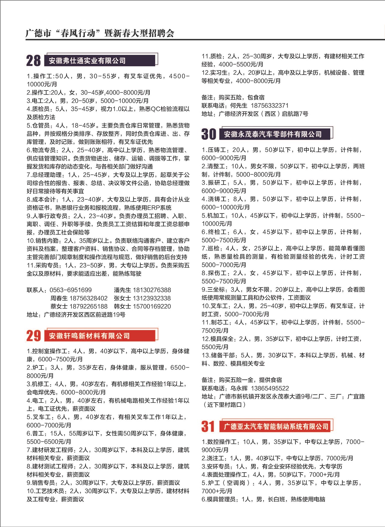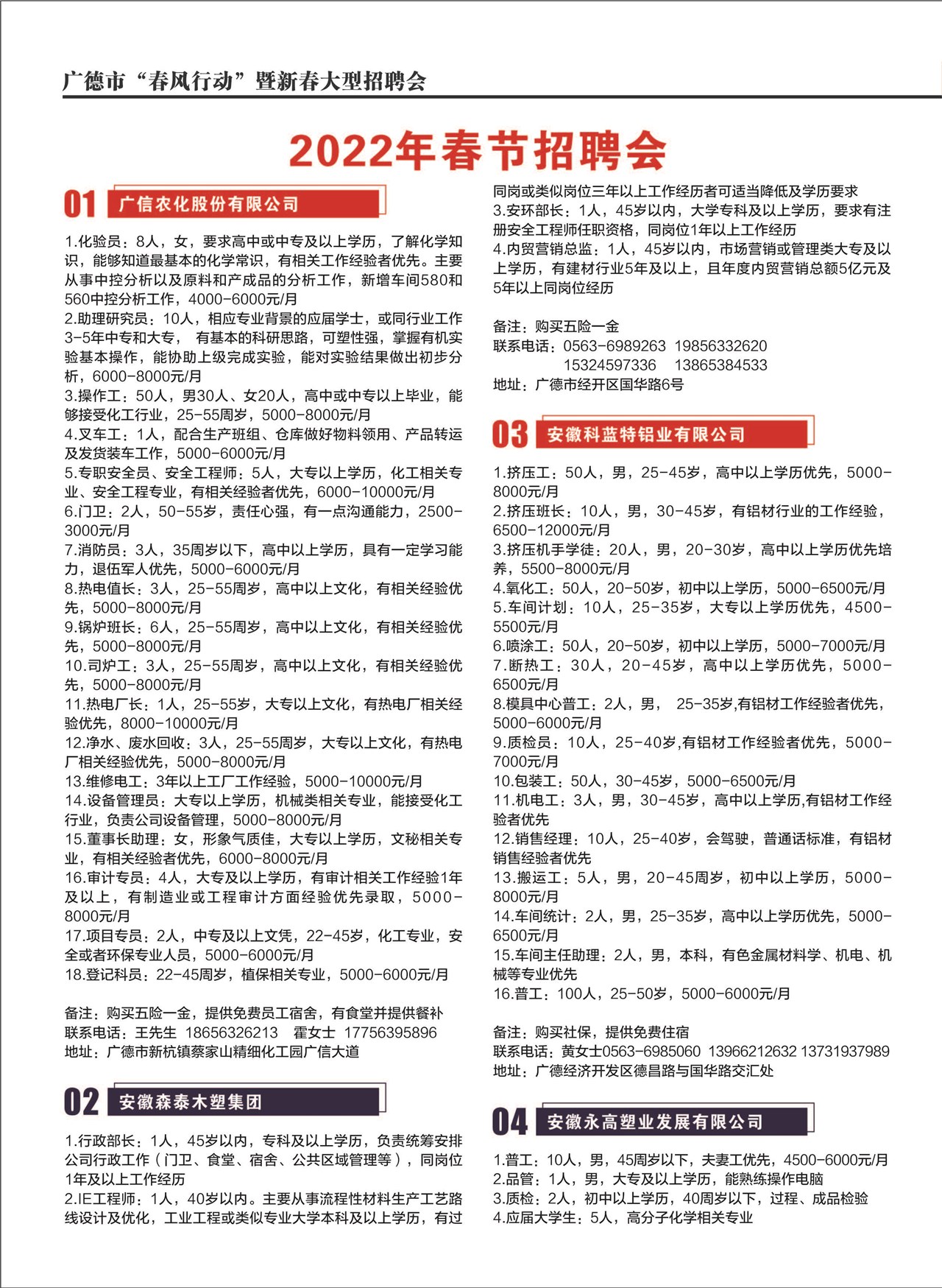 【崗位信息發(fā)布】廣德市“春風行動”暨新春大型招聘會