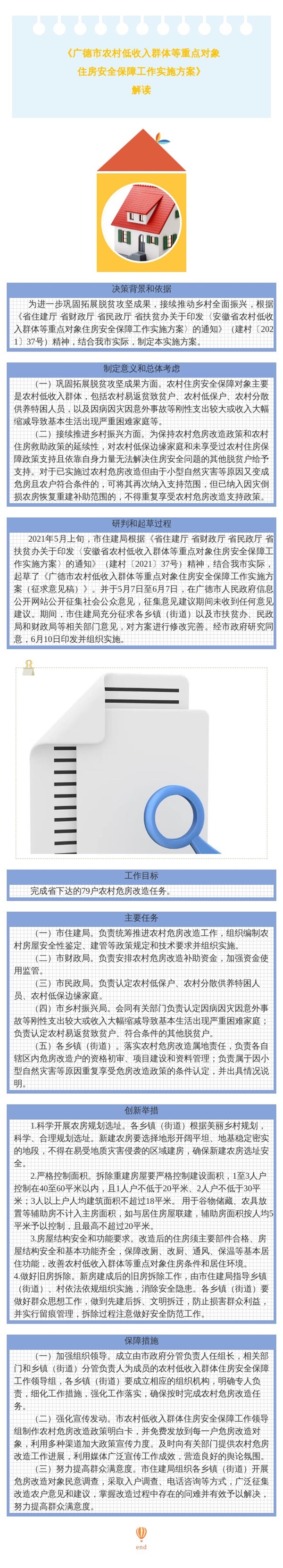 名稱: 圖片解讀】《廣德市農(nóng)村低收入群體等重點對象住房安全保障工作實施方案》政策解讀 文號:
