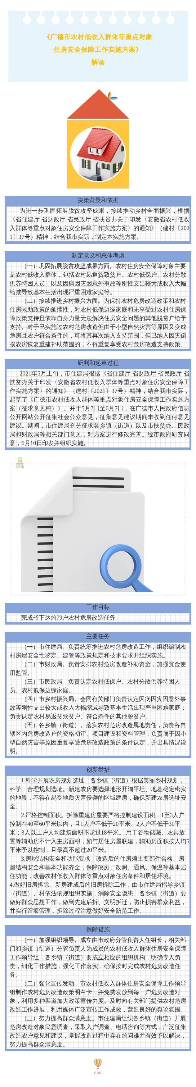 | 名稱: | 【圖片解讀】《廣德市農(nóng)村低收入群體等重點(diǎn)對(duì)象住房安全保障工作實(shí)施方案》政策解讀 | 文號(hào): | 無(wú) |