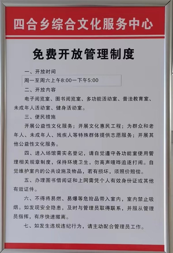 | 名稱: | 四合鎮(zhèn)文化站免費(fèi)開放時(shí)間 | 文號(hào): | 無 |
