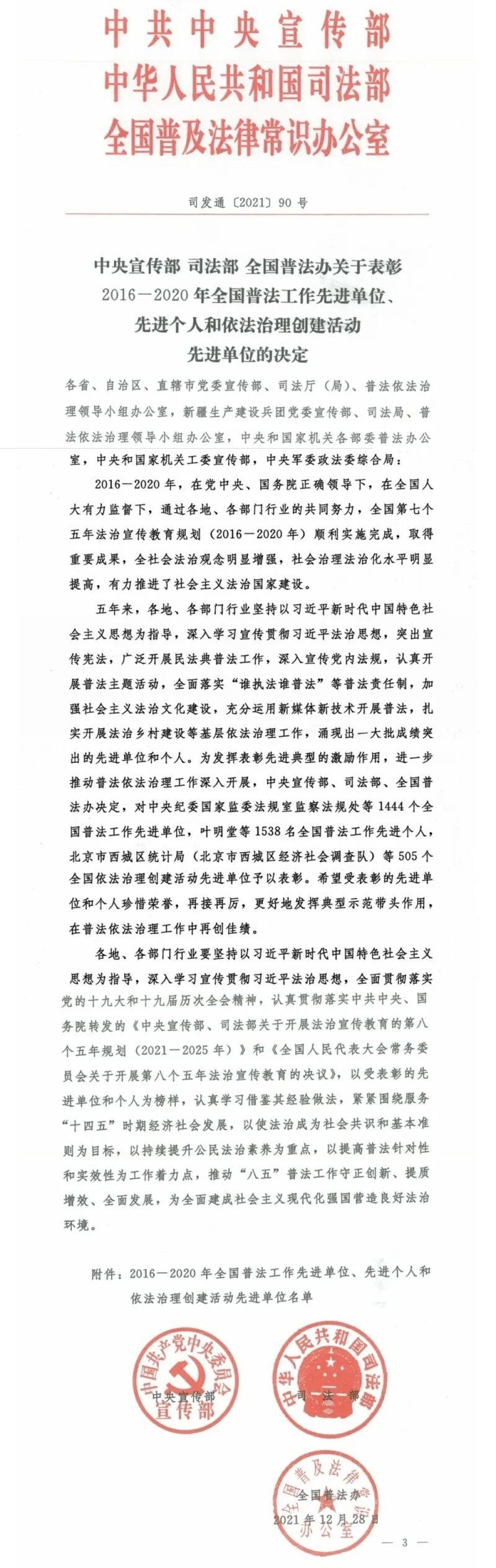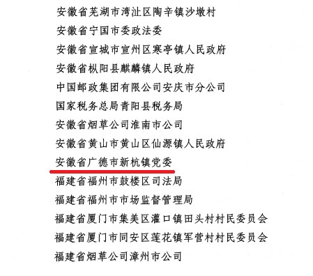 近日,《中央宣傳部 司法部 全國普法辦關(guān)于表彰2016-2020年全國普法工作先進(jìn)單位、先行個人和依法治理創(chuàng)建活動先進(jìn)單位的決定》(司發(fā)通〔2021〕90號)印發(fā)。廣德市新杭鎮(zhèn)黨委被表彰為“全國依法治理創(chuàng)建活動先進(jìn)單位”。