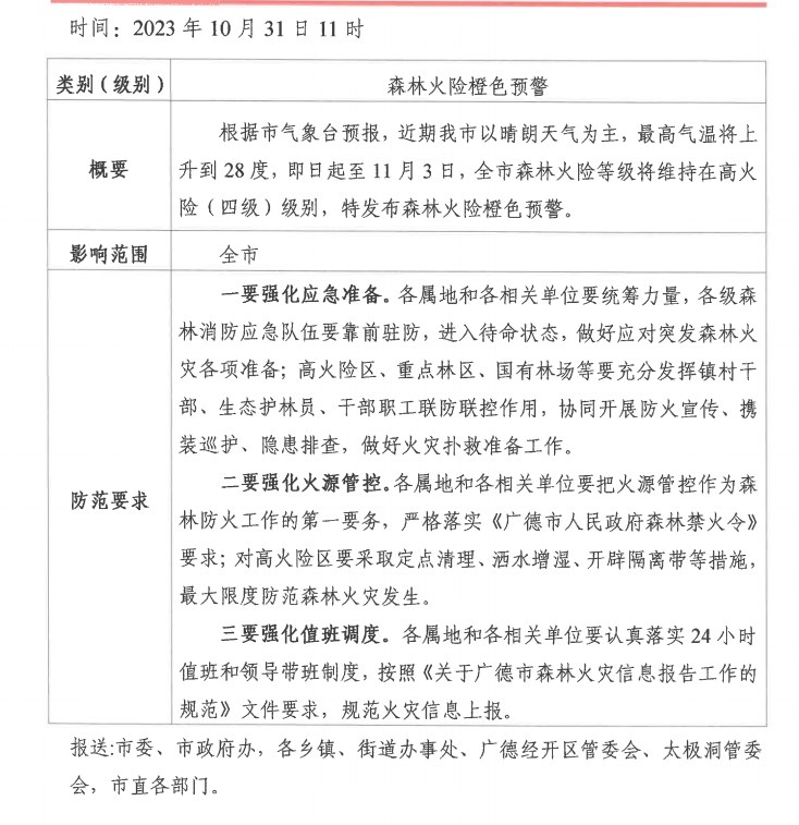 名稱: 【預警信息】森林火險橙色預警 文號: