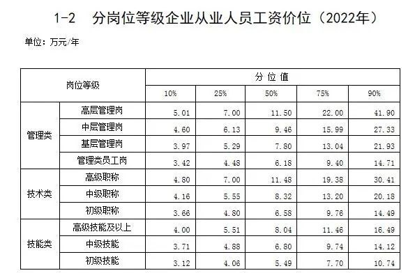 分崗位等級(jí)企業(yè)從業(yè)人員工資價(jià)位(2022年)