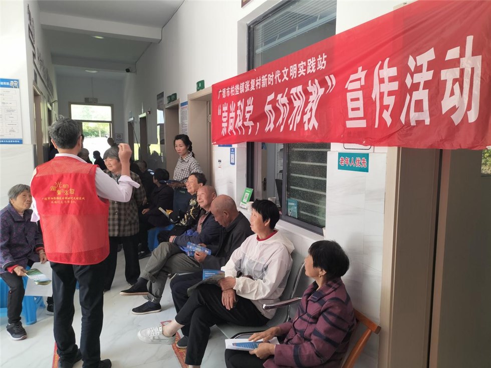 活動(dòng)前期,村(社區(qū))工作人員通過本村村民微信群、鄉(xiāng)村大喇叭、入戶宣傳等形式提前發(fā)放活動(dòng)通知、利用橫幅、戶外電子宣傳屏等載體,懸掛、播放反邪教宣傳標(biāo)語、視頻等充分做好活動(dòng)預(yù)熱,營(yíng)造濃厚宣傳氛圍。并利用村民微信群村里積極引導(dǎo)村民群眾參加“中國(guó)反邪教”的“簽名答題”欄目活動(dòng)。 另外我鎮(zhèn)充分利用柏墊鎮(zhèn)衛(wèi)生院給老年人做免費(fèi)體檢活動(dòng)中老年群體居多的優(yōu)勢(shì),再保證不打擾醫(yī)務(wù)工作人員工作的同時(shí),利用老年人排隊(duì)等體檢的時(shí)間,我們向他們發(fā)放反邪教宣傳手冊(cè)及普及反邪教知識(shí)和邪教的危害。