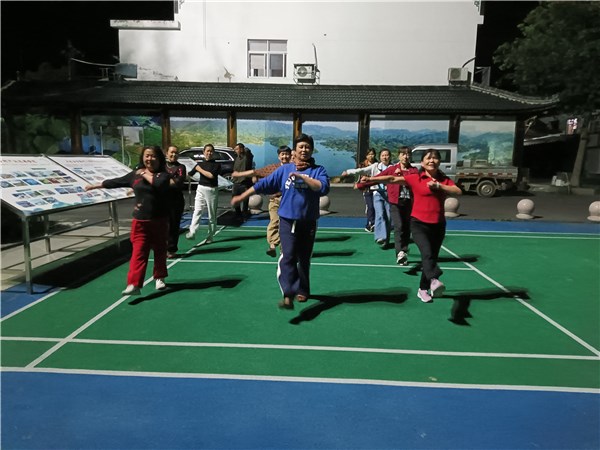 夜幕降臨,華燈初上。廣場(chǎng)上,領(lǐng)隊(duì)高秀萍帶領(lǐng)著學(xué)員們從簡(jiǎn)單的舞蹈動(dòng)作學(xué)起,由易到難,由簡(jiǎn)到繁,很快學(xué)員們就掌握了一整套舞蹈動(dòng)作。輕盈的舞姿、自信的神態(tài),村老年學(xué)校的學(xué)員們展現(xiàn)了銀發(fā)一族的蓬勃活力和良好精神風(fēng)貌,成為村夜晚一道靚麗的風(fēng)景線。
