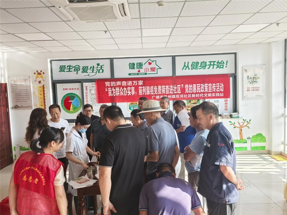 為積極響應(yīng)國家關(guān)于健康中國建設(shè)的號召,提高50周歲以上老年男性前列腺癌的早期診斷率。9月12日,廣德市桃州鎮(zhèn)雙河社區(qū)老年學習點、老年協(xié)會在雙河社區(qū)新時代文明實踐站組織下開展黨的聲音進萬家——“我為群眾辦實事,前列腺癌免費篩查進社區(qū)”黨的惠民政策宣傳活動。