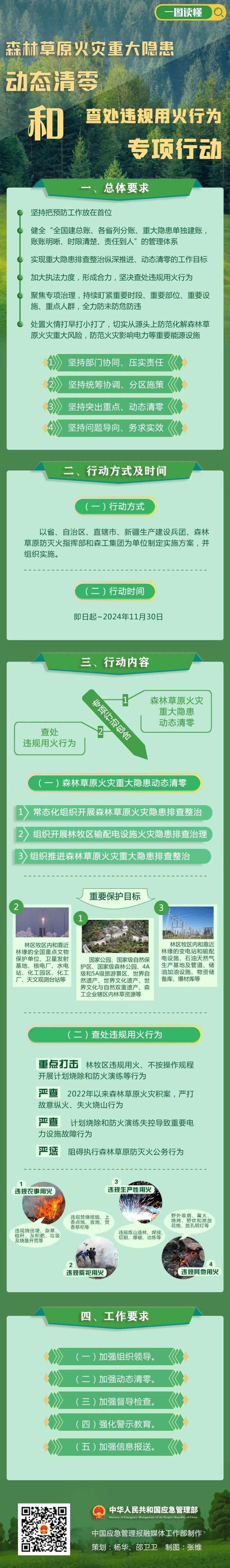| 名稱(chēng): | 【圖片解讀】《2024年森林草原火災(zāi)重大隱患動(dòng)態(tài)清零和查處違規(guī)用火行為專(zhuān)項(xiàng)行動(dòng)》 | 文號(hào): | 無(wú) |