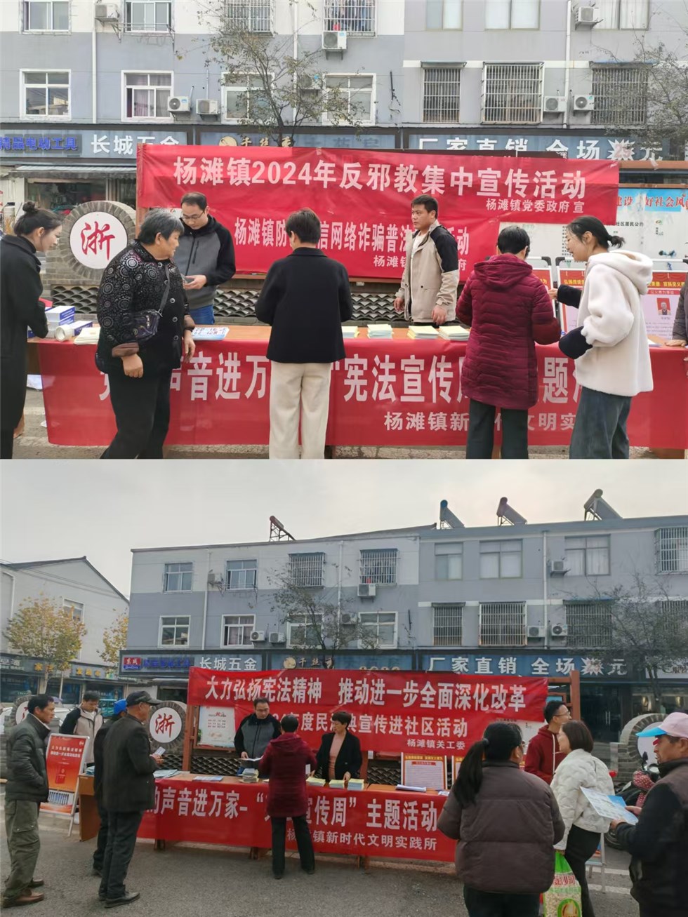 12月4日,綜治辦聯(lián)合司法所、創(chuàng)建辦、計生辦在楊灘街道進行“憲法宣傳周”活動,重點針對憲法、反電詐、反邪教等內容進行了宣傳。通過此次宣傳活動,提高了群眾的法律意識和安全防范意識,切實增強了群眾的安全感、滿意度。