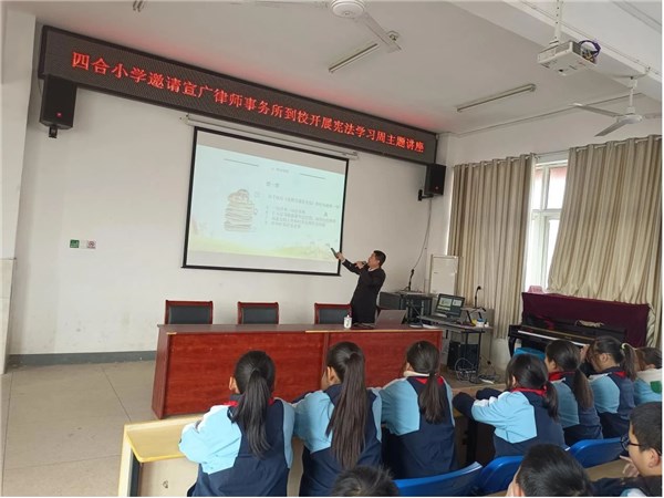 2024年12月1日至12月7日,是我國(guó)第七個(gè)憲法宣傳周。為進(jìn)一步加強(qiáng)青少年憲法宣傳教育,增強(qiáng)學(xué)生對(duì)憲法的認(rèn)識(shí)與了解,2024年12月4日,廣德市四合鄉(xiāng)中心小學(xué)邀請(qǐng)安徽宣廣律師事務(wù)所赴廣德市四合小學(xué)開(kāi)展以“學(xué)憲法、講憲法、爭(zhēng)做憲法小衛(wèi)士”為主題的憲法知識(shí)宣傳活動(dòng),該校近百名師生聆聽(tīng)了該所王林律師的憲法宣講。