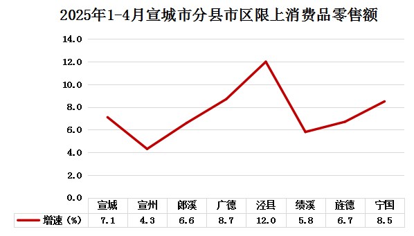 3.商貿(mào)。1-4月,全市限上消費(fèi)品零售額同比增長(zhǎng)8.7%,4月當(dāng)月限上消費(fèi)品零售額同比增長(zhǎng)10.1%。