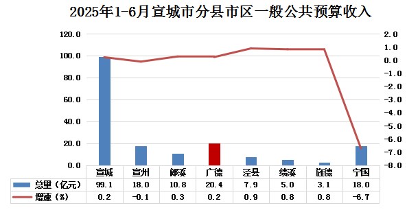 6.財(cái)政。1-6月,全市實(shí)現(xiàn)一般公共預(yù)算收入20.4億元,同比增長(zhǎng)0.2%,稅收收入累計(jì)完成13.2億元,占一般公共預(yù)算收入比重為64.9%。