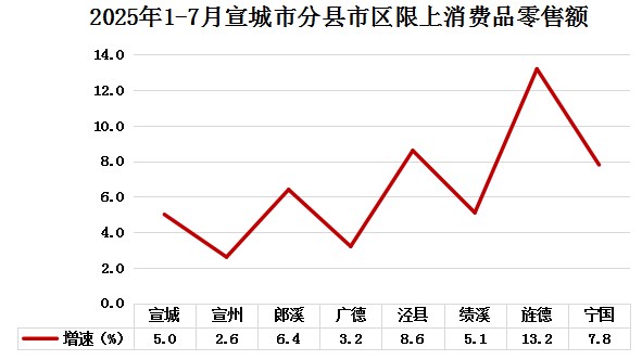 3.商貿(mào)。1-7月,全市限上消費品零售額同比增長3.2%,7月當(dāng)月限上消費品零售額同比下降18.8%。