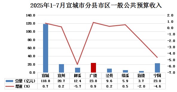 4.財政。1-7月,全市實現(xiàn)一般公共預(yù)算收入23.8億元,同比增長0.9%,7月當(dāng)月實現(xiàn)一般公共預(yù)算收入3.5億元,當(dāng)月同比增長4.6%;稅收收入累計完成16.4億元,占一般公共預(yù)算收入比重為68.7%。