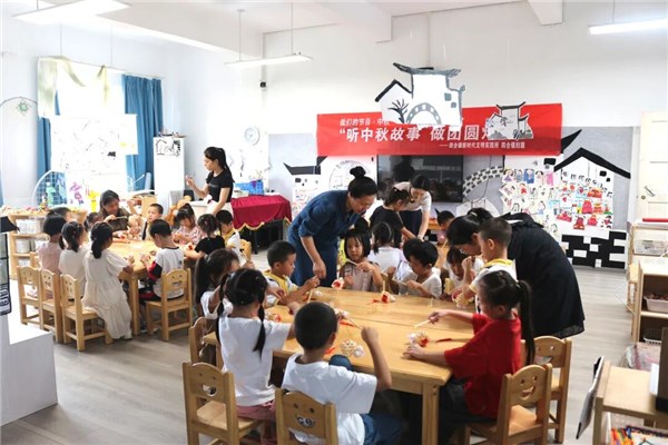 9月29日上午,四合中心幼兒園里傳來陣陣歡聲笑語,志愿者們正在為孩子們講述《嫦娥奔月》的美麗傳說,講述中秋節(jié)的來歷和習(xí)俗。