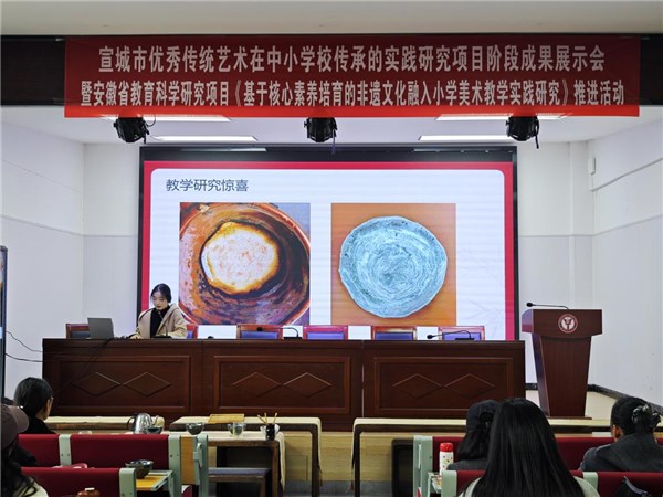 為提升美術(shù)教師教學(xué)水平,深化新課標下新教材解讀與教學(xué)方法交流,2025年11月24日,優(yōu)秀傳統(tǒng)藝術(shù)在中小學(xué)校傳承的實踐研究項目階段成果展示會暨安徽省教育科學(xué)研究項目《基于核心素養(yǎng)培育的非遺文化融入小學(xué)美術(shù)教學(xué)實踐研究》推進活動在楊灘鎮(zhèn)中心小學(xué)成功舉辦。全市美術(shù)教師、學(xué)科中心教研組成員及課題核心成員齊聚一堂,共探傳統(tǒng)藝術(shù)與美術(shù)教學(xué)的融合之道。