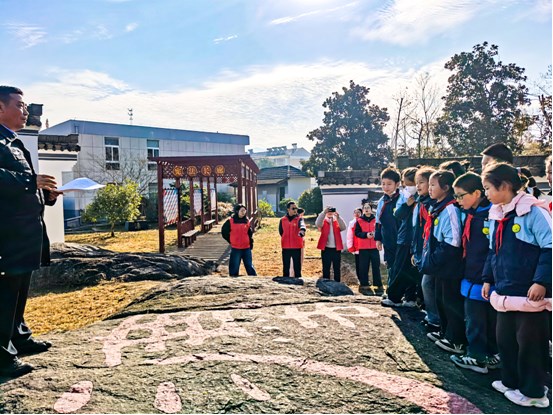 司法所工作人員結(jié)合公園法治雕塑,通過解讀古體“灋”字,用“水代表公平、神獸明辨是非”的通俗講解,讓孩子在現(xiàn)場教學(xué)活動的趣味性中,帶孩子們追溯法治本源。