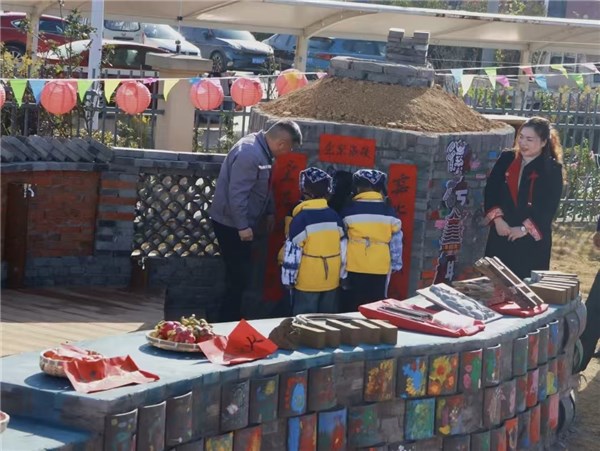 開窯儀式上,黃宗成“手把手”教孩子們完成貼對(duì)聯(lián)、敷泥點(diǎn)火、取磚掃塵等傳統(tǒng)流程?!盎罩蓍_窯有貼對(duì)聯(lián)討彩頭的老規(guī)矩,這副‘窯火承徽韻,童手造好磚’就是希望非物質(zhì)文化遺產(chǎn)文脈能通過孩子們的雙手傳承下去?!秉S宗成舉起一塊帶有精美花紋的徽磚,向孩子們講述道,“一塊徽磚要經(jīng)過選土、煉泥、制坯、燒制等十幾道工序,就像你們成長一樣,需要耐心和堅(jiān)持?!彼脑捳Z通俗易懂,孩子們捧著剛?cè)〕龅幕沾u,小心翼翼地用刷子清掃表面,眼神中滿是好奇與珍視。