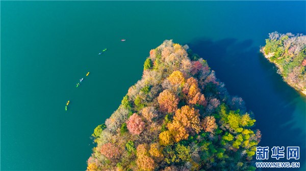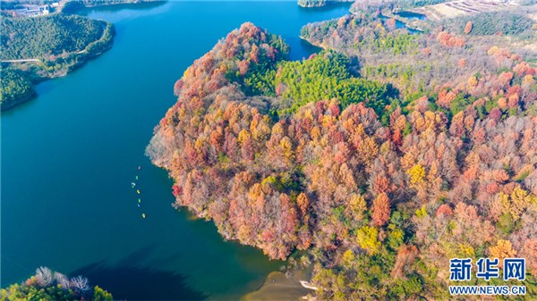 航拍安徽省宣城廣德市四合鄉(xiāng)接龍湖。