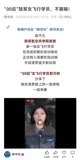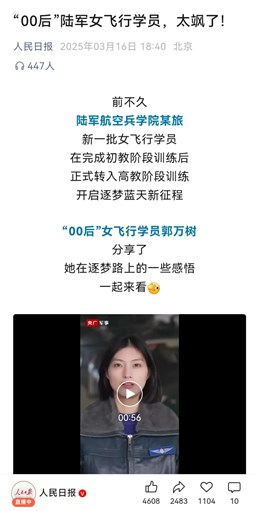 近日,新華社、人民日報等媒體轉(zhuǎn)發(fā)點贊廣德“00后”陸軍女飛行員郭萬樹。