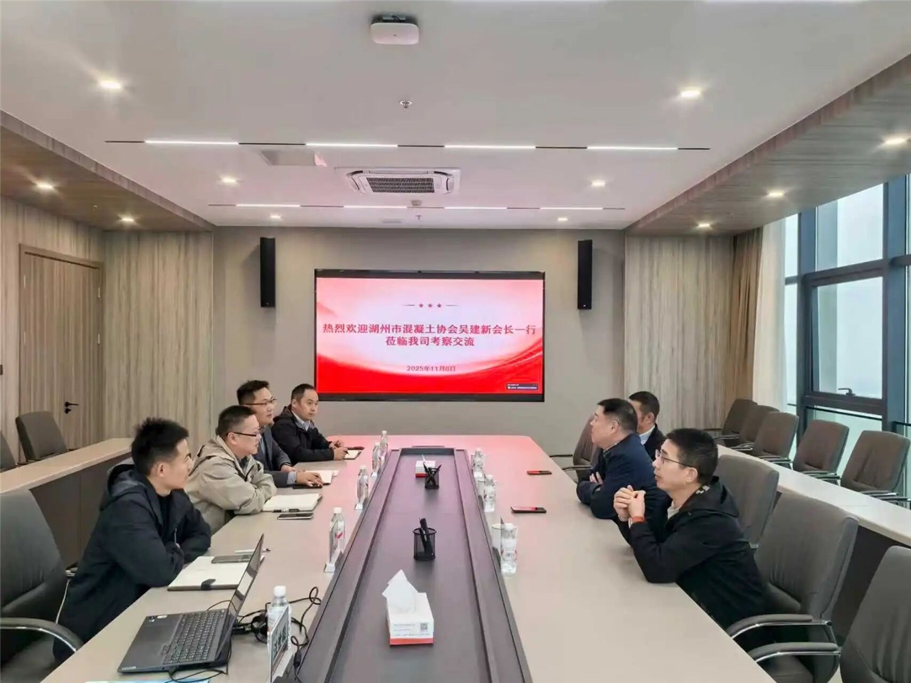 11月6日下午,湖州眾馳建材有限公司總經(jīng)理、湖州市混凝土協(xié)會(huì)會(huì)長(zhǎng)吳建新一行到訪建材公司,就砂石骨料采購(gòu)事宜開(kāi)展交流座談。市國(guó)投公司分管同志及建材公司、工貿(mào)公司相關(guān)人員參會(huì)。