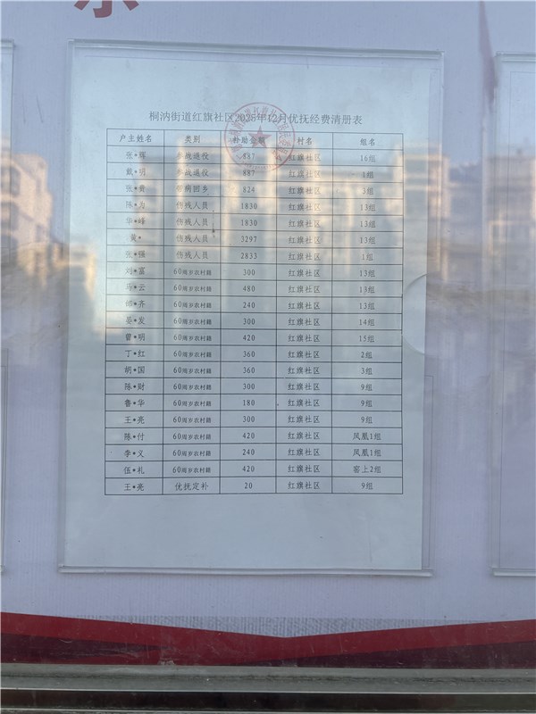 | 名稱(chēng): | 紅旗社區(qū)2025年12月份惠民惠農(nóng)資金發(fā)放情況 |