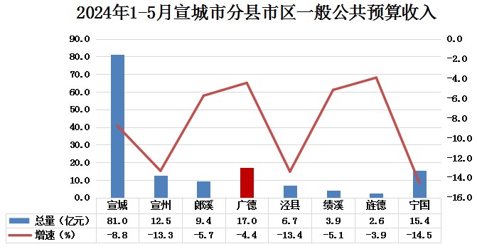 4.財政。1-5月,全市實現(xiàn)一般公共預(yù)算收入17.0億元,同比下降4.4%;5月當(dāng)月實現(xiàn)一般公共預(yù)算收入3.1億元,當(dāng)月同比增長59.7%;稅收收入累計完成11.2億元,占一般公共預(yù)算收入比重為65.9%。