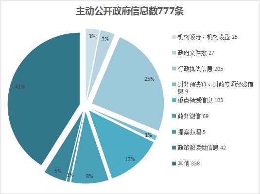 (一)主動公開情況。2019年主動公開政府信息777條。主動公開規(guī)范性文件0件。主動公開重點領(lǐng)域政府信息103條。其中,公開行政權(quán)力運行類信息206條。公開上級決策部署落實情況、發(fā)展規(guī)劃相關(guān)信息22條。公開人大代表建議2件、政協(xié)委員提案3件答復(fù)內(nèi)容,公開率100%。發(fā)布財政預(yù)決算、及財政專項資金使用情況等信息7條。2019年發(fā)布各類解讀材料42條,電視新聞1條。